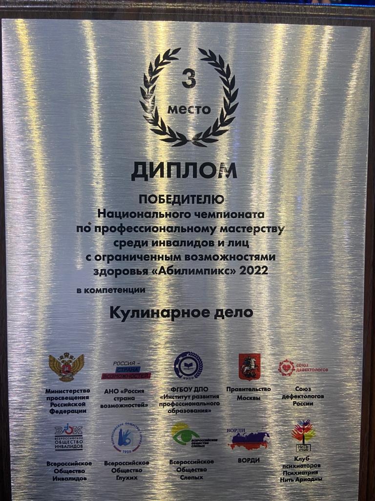 3 место в Национальном чемпионате по профессиональному мастерству среди инвалидов и лиц с ограниченными возможностями здоровья «Абилимпикс