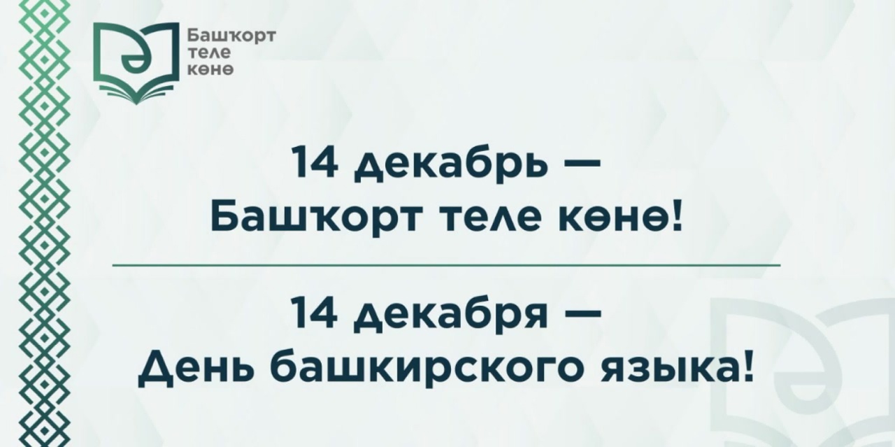 14 декабря Республика Башкортостан отмечает День башкирского языка, установленный главой Республики в 2019 году с целью сохранения и развития башкирского языка как поддержание языкового многообразия народов Российской Федерации.