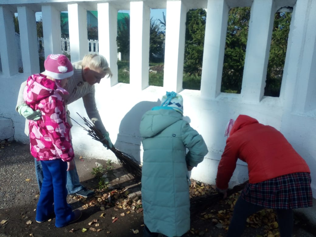 Вооружившись необходимым инвентарем, ребята и педагоги с удовольствием приводили в порядок школьную территорию: собирали мусор, сгребали листву и траву. Общими усилиями за несколько часов школьная территория преобразилась.