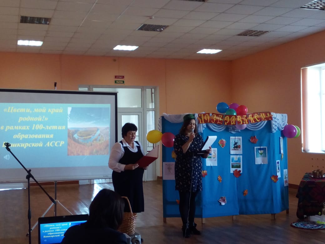 8 октября проведено общешкольное мероприятие «Цвети, мой край родной!», посвященное Дню Республики в рамках 100-летия образования Башкирской АССР. На мероприятии царила теплая и доброжелательная атмосфера, создающая условия для живого общения. Мы говорили о нашем родном Башкортостане, о его бескрайних просторах и бесчисленных богатствах. Особое внимание уделялось главному событию 2019 года - 100-летию образования Башкирской АССР. Звучали стихотворения на башкирском языке, песни о Башкортостане и любви к родному краю, исполнялись башкирские национальные танцы. Обучающиеся имели возможность участвовать в различных конкурсах под сопровождение различных башкирских мелодий. На мероприятии были представлены башкирские национальные атрибуты - юрта, домашняя утварь, музыкальные инструменты, а также бюст национального героя Салавата Юлаева .