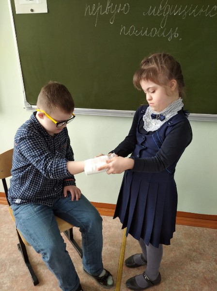 В 7-9 классах классный час провела медицинский работник Ильязова Л.Г. Она ознакомила и наглядно продемонстрировала правила оказания первой помощи.