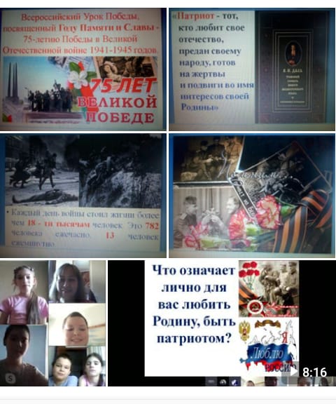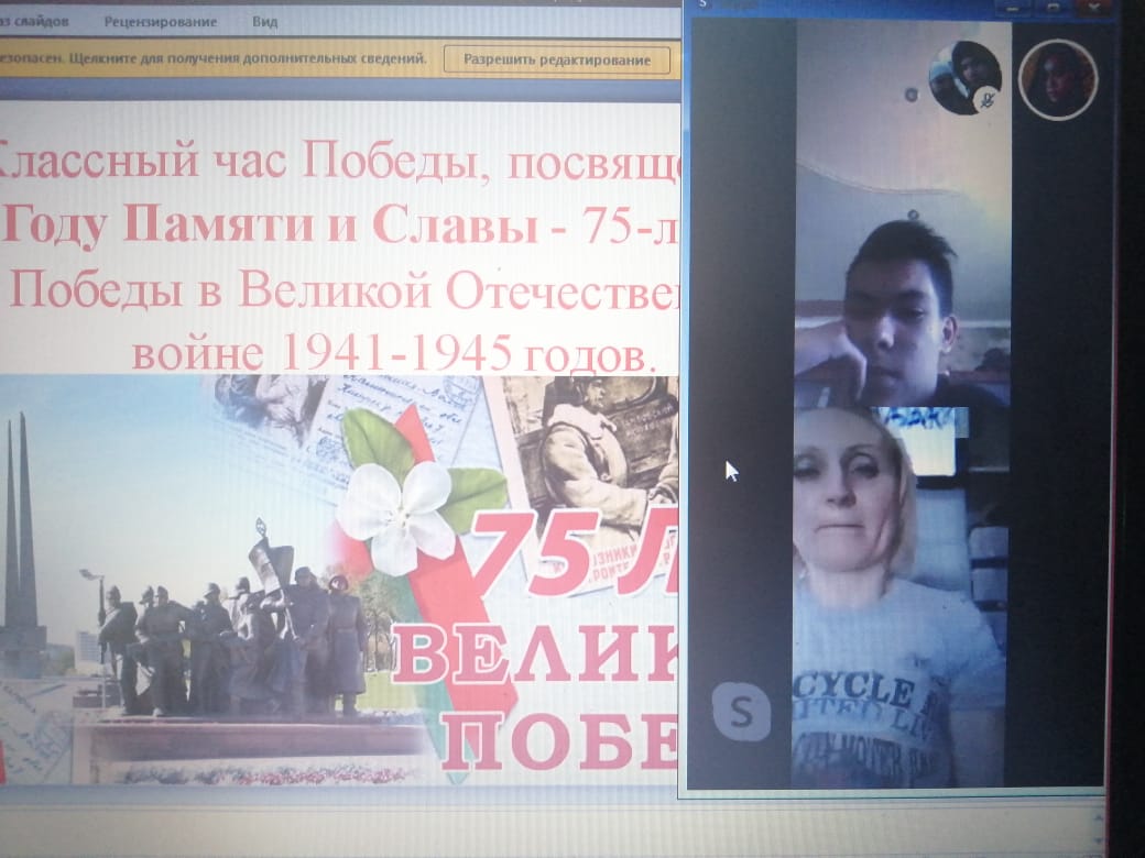 С 7 по 8 мая 2020 года классными руководителями были проведены классные часы «Земля без войны» в дистанционной форме. Мы надеемся, что обучающиеся будут помнить о подвиге нашего народа в Великой Отечественной Войне, будут с уважением относиться к ветеранам ВОВ не только в преддверии этого дня, но и в течение всего времени, и по возможности, помогать им в жизни.