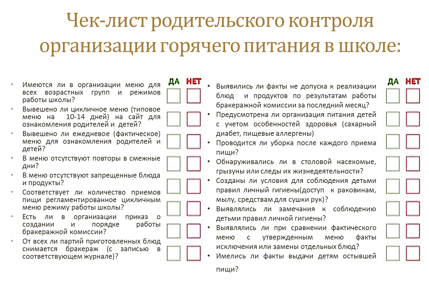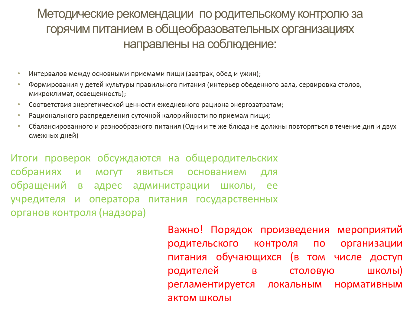 Рекомендации (чек-лист) по родительскому контролю за организацией горячего питания детей в общеобразовательных организациях