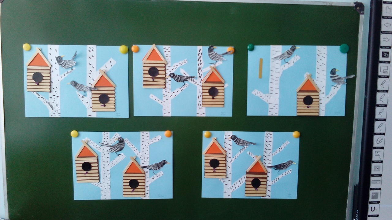 4 апреля во 2 а классе был проведён урок изобразительного искусства "Скворечник. Комбинированная работа" под руководством Новокрещеновой И.С. В ходе урока учащиеся повторили перелётных птиц, жилища птиц и животных, части скворечника. Скворечник был изготовлен из бросового материала, пластилина, цветной бумаги. Итогом урока стала выставка работ.