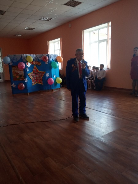 7.05.19г. в нашей школе состоялось торжественное мероприятие, посвященное празднованию Дня Победы, на котором присутствовал ветеран Великой Отечественной войны Ахмадиев Рашид Хисамович. Он поделился с нами рассказом о тяжелой жизни в годы войны.