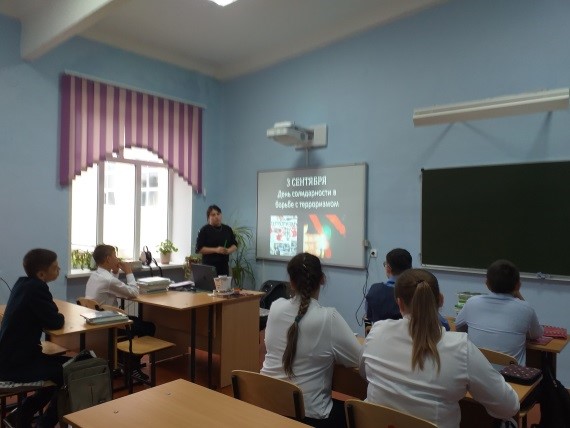 3 сентября - в День солидарности в борьбе с терроризмом - первым уроком в школе проведены классные часы с организацией акции «Свеча Памяти» на темы «Слово - Мир» для 0а-4а и классов для обучающихся с ТМНР и «Вместе против террора» для 5а-10а классов. Эта дата связана с трагическими событиями в городе Беслане 1-3 сентября 2004 года, где в результате террористического акта в школе террористы трое суток удерживали людей, половина которых погибли.