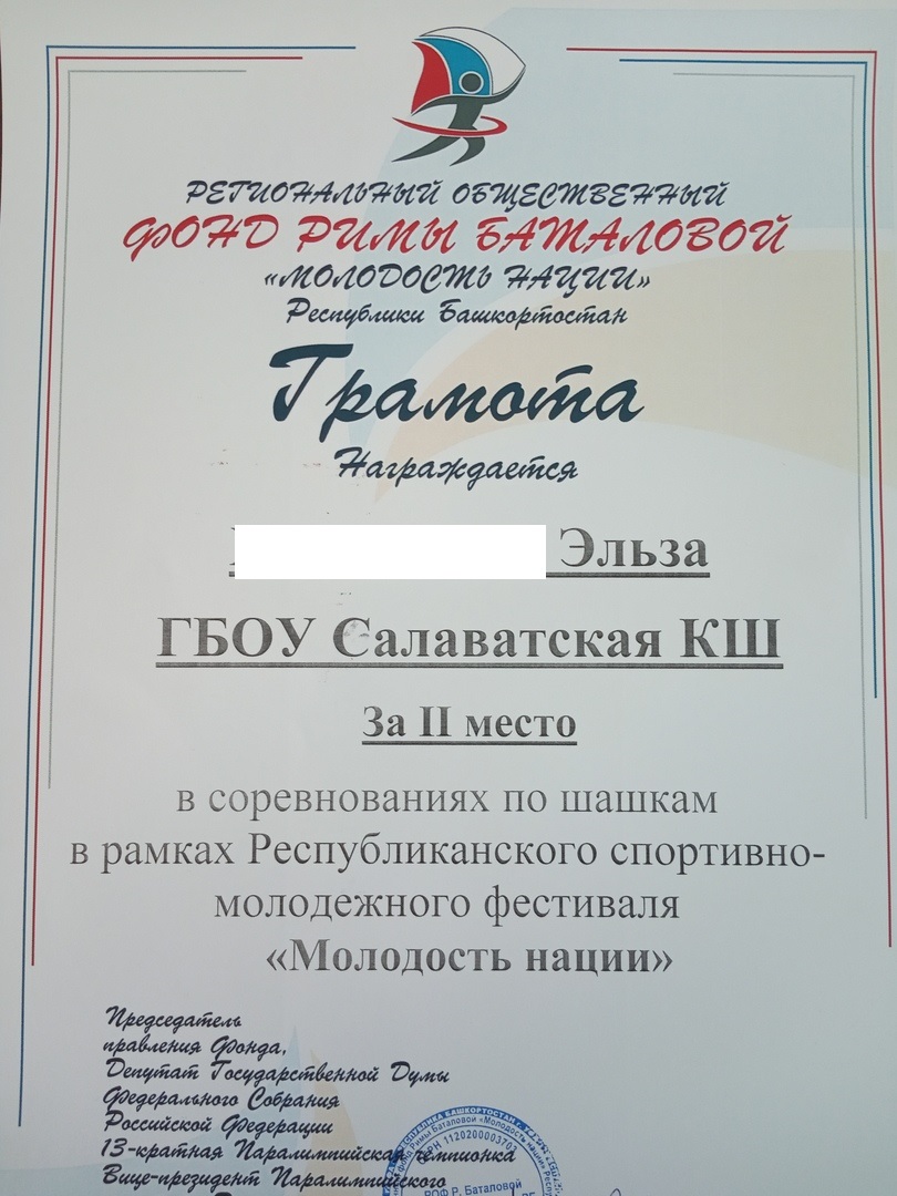 Х.Эльза- II место в соревнованиях по шашкам;