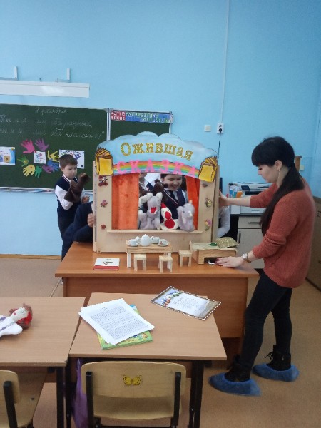 В рамках мастер-класса "Ожившая сказка" работники МБУ ЦБС "Детской библиотеки № 8" предложили детям послушать рассказ М.Карима "Скворчонок". Обучающиеся с удовольствием слушали, рассматривали книги, изготовленные  трудолюбивыми руками самих библиотекарей. А также детям было предложено выбрать сказку и кукольных персонажей и самим стать артистами кукольного театра. Учащиеся 3 класса остались довольны.