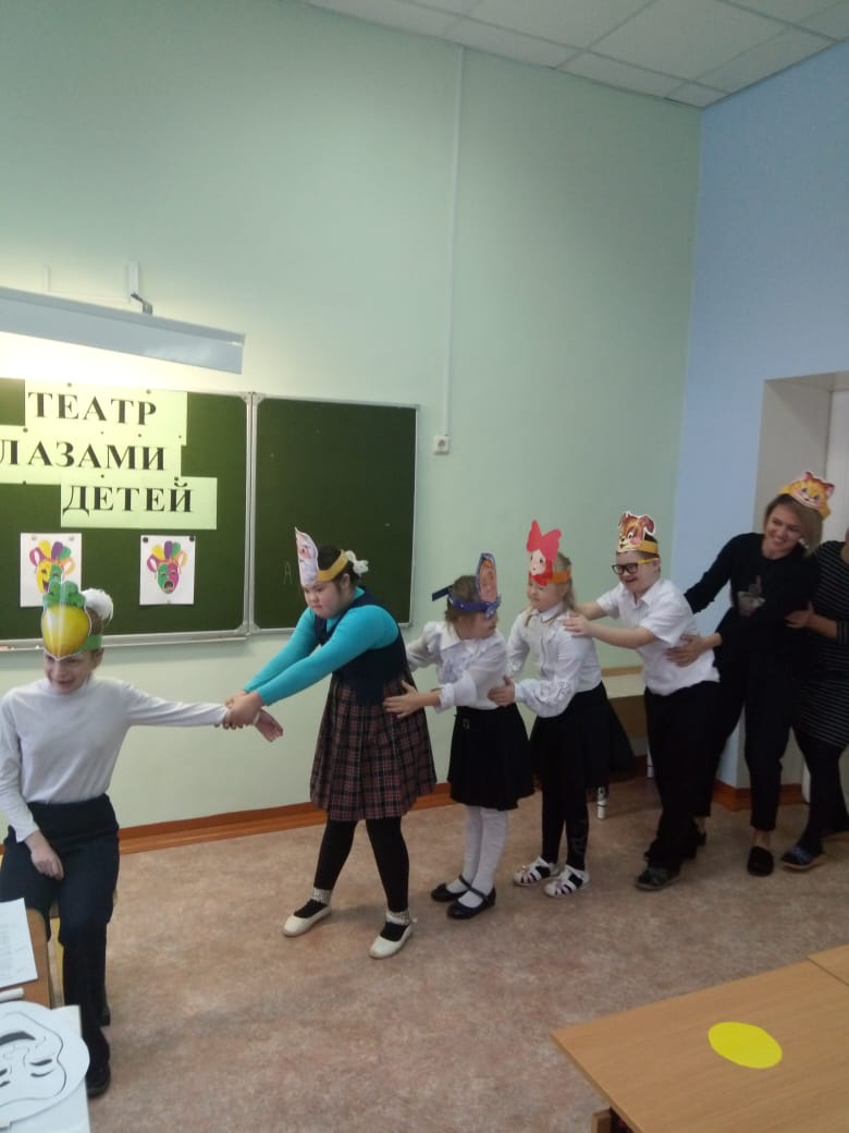 Цель данного мероприятия- развитие воображения и формирование эстетических потребностей, ценностей и чувств как один из способов достижения личностных результатов, формирование навыков совместного творчества через различные виды деятельности. На данном мероприятии обучающиеся расширили и закрепили знания о истории театра, повторили виды театра, представления о театре и профессиях людей, работающих в театре.Познавательно для детей оказались речевые игры, речевые упражнения на мимику, жесты и эмоции. Самым ярким этапом классного часа стало выступление детей - постановка сказки "Кошкин дом", где актёрами были сами ребята. Дети очень умело, эмоционально вошли в свою роль, актёры разыграли прекрасное представление для присутствующих гостей. Самое главное актёры получили главную награду -это аплодисменты.